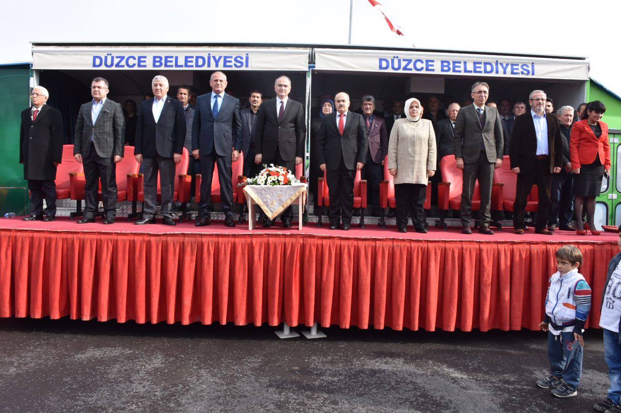 Darıcı mahallesinde 31 bin 500 metrekare alan üzerine yapılan Düzce Belediyesi Şehirlerarası Otobüs Terminali açılış törenine Bilim, Sanayi ve Teknoloji Bakanı Dr. Faruk Özlü, Düzce Valisi Zülkif Dağlı, Düzce Milletvekilleri Fevai Arslan, Ayşe Keşir, İSKİ Genel Müdürü Fatih Turan, Düzce protokolü ve vatandaşlar katıldı. Düzce Belediyesi Mehter takımı ve Halk Dansları Topluğunun gösterileri ile başlayan açılış protokol konuşmaları ile devam etti. Terminalin Düzce’nin 50 yıllık ihtiyacını karşılaşacağını belirten Düzce Belediye Başkanı Mehmet Keleş konuşmasında özetle şu görüşlere yer verdi “ Bugün çok önemli gün… Yüksek kapasiteli bir otobüs terminalinin açılışını gerçekleştiriyoruz. Yıllardan beri bunun eksikliğini yaşıyoruz. Depremden sonra ilk otobüs terminali asar kenarında sonra da çoban mevki alanına taşıdık, çok yetersiz bir yerdi. Otogar şimdi bu muhteşem alanda hizmet verecek. 50 yıllık ihtiyacını karşılayacaktır. Otobanı tamamladığımız da bir eksiklik daha giderilecektir. Düzce merkezden otobana çıkışı sağlayacağız. Düzce’ye gelen misafirlerimizin ilk karşılandığı ve ilk hizmetin sunulduğu mekân olan otogarımız, çağdaş standartlarda hizmet edecek, şehrin imajına da önemli katkı sağlayacaktır. Terminalimiz gerek ölçeği, gerekse mimari tasarımı açısından bölgemizin örnek otogar komplekslerinden biri olarak gösterilecektir.”