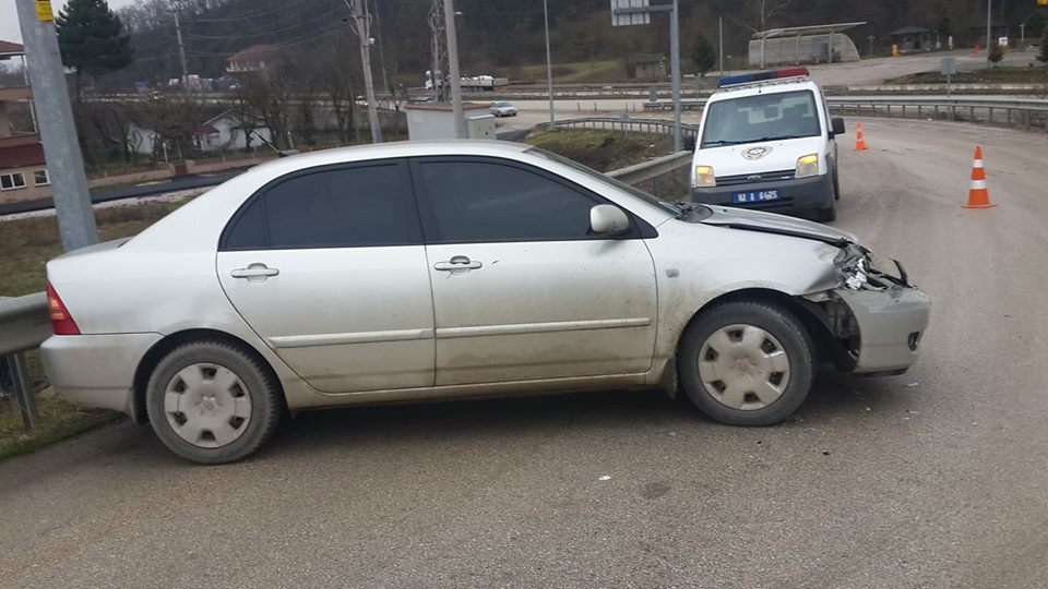 D-100 Karayolu ile Cumayeri karayolu dönüş’ünde bugün saat 11.30 civarında otomobilin buzlanan yolda kayarak bariyerlere çarpması sonucu yaralanan olmaz iken araçta maddi hasar meydana geldi.