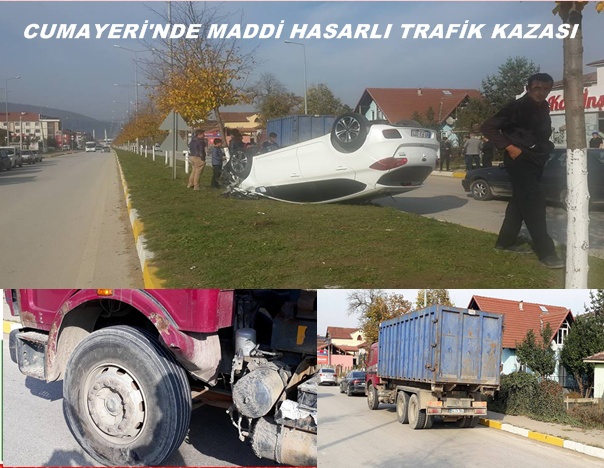 Edinilen bilgiye göre, Cumayeri ilçesi girişinde Akaryakıt istasyonu karşısında Gökhan .E (34) idaresindeki 81 FS 071 plakalı otomobil, aynı yöndeki sürücüsünün ismi öğrenilemeyen 54 TV 564 plakalı kamyona ön sol lastik kısmına çarptı. Kazada otomobil sürücüsü Gökhan .E. yaralandı. Yaralı olay yerine sevk edilen ambulanslarla Düzce Devlet Hastanesine kaldırılarak tedavi altına alındı. Kamyon şoförü kaza sonrası gözaltına alındı.