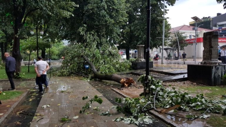 Düzce'de bir anda bastıran yağış ve fırtına yıkdı geçdi.