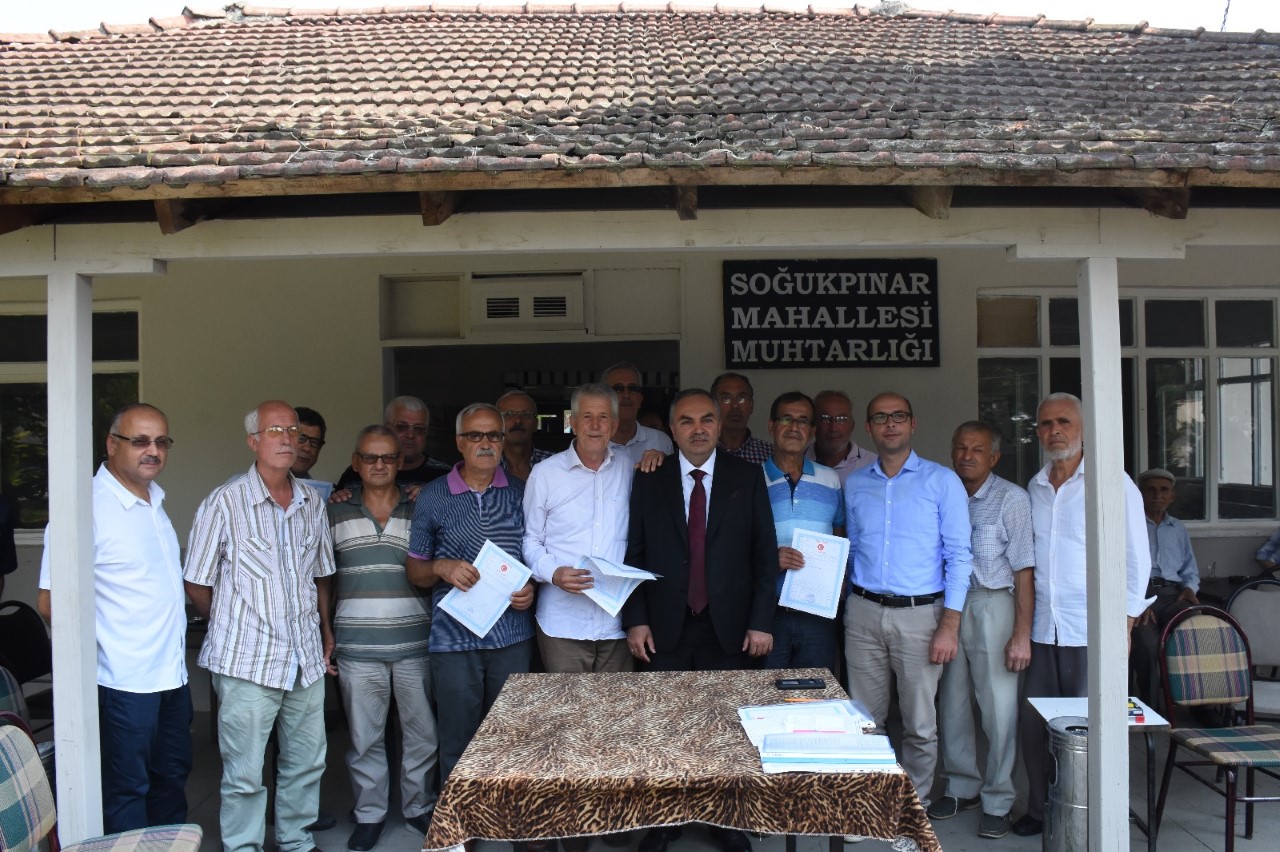 Düzce Beledi Başkanı Dursun Ay, 18. madde uygulaması kapsamında parselasyon yapılan Soğukpınar Mahallesi sakinlerine tapularını teslim etti.