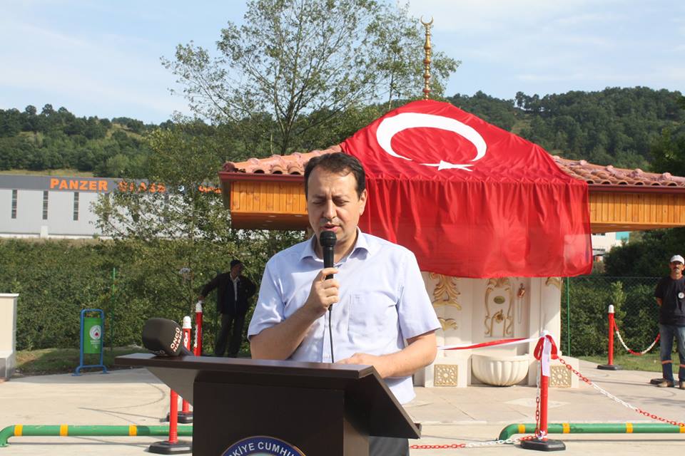 "15 Temmuz'daki kahramanlık destanını nesilden nesile kıyamete kadar yaşatmak üzere hazırlamış olduğumuz 15 Temmuz Şehitler Çeşmemizi açıyoruz. Birileri fiziki olarak kuvvet uygulamaz ise kıyamete kadar bulunmasını istiyorum. Bu çeşmeden su içenler, serinlemek amacıyla istifade edenler her fırsatta şehit ve gazilerimizi yad edecekler. Bu eserin de Gümüşova da olması ayrı bir anlam taşıyor.."