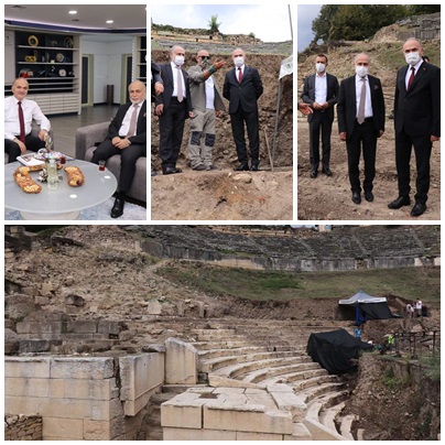 Konuralp Antik Tiyatro alanında devam eden kazı çalışmalarını ziyaret eden Başkan Özlü, Hamza Cebeci’ye kazılarda kat edilen mesafe hakkında bilgi verdi. Başkan Özlü: “Konuralp, tarihi 2 bin yıl öncesine dayanan, yer altında türlü tarihi zenginliklere sahip, Batı Karadeniz’in en büyük Antik kenti. Burada Türk Tarih Kurumu’nun desteği ve kurumlar arası iş birliği halinde yürüttüğümüz kazılarda sadece bu bölge için değil, Anadolu’da en iyi korunmuş tarihi yapılara rastladık. Düzce Belediyesi olarak her gün yaklaşık 50 personel ile buradaki çalışmalara destek veriyoruz. Her kazdığımız noktadan adeta bir tarih ortaya çıkıyor, tarihin seyrini değiştirecek gelişmeler yaşanıyor diyebiliriz. Hedefimiz bu tarihi alanı 3 yıl içinde Dünya Mirasına kazandırmaktır. Bugün burada bizlerle olan misafirlerimiz de bizim için çok değerli, onlara buradaki hazineyi göstermek istedik. Hemşehrimiz Sayın Hamza Cebeci’ye ve Sayın Övgü Bey’e çok teşekkür ediyorum” dedi.