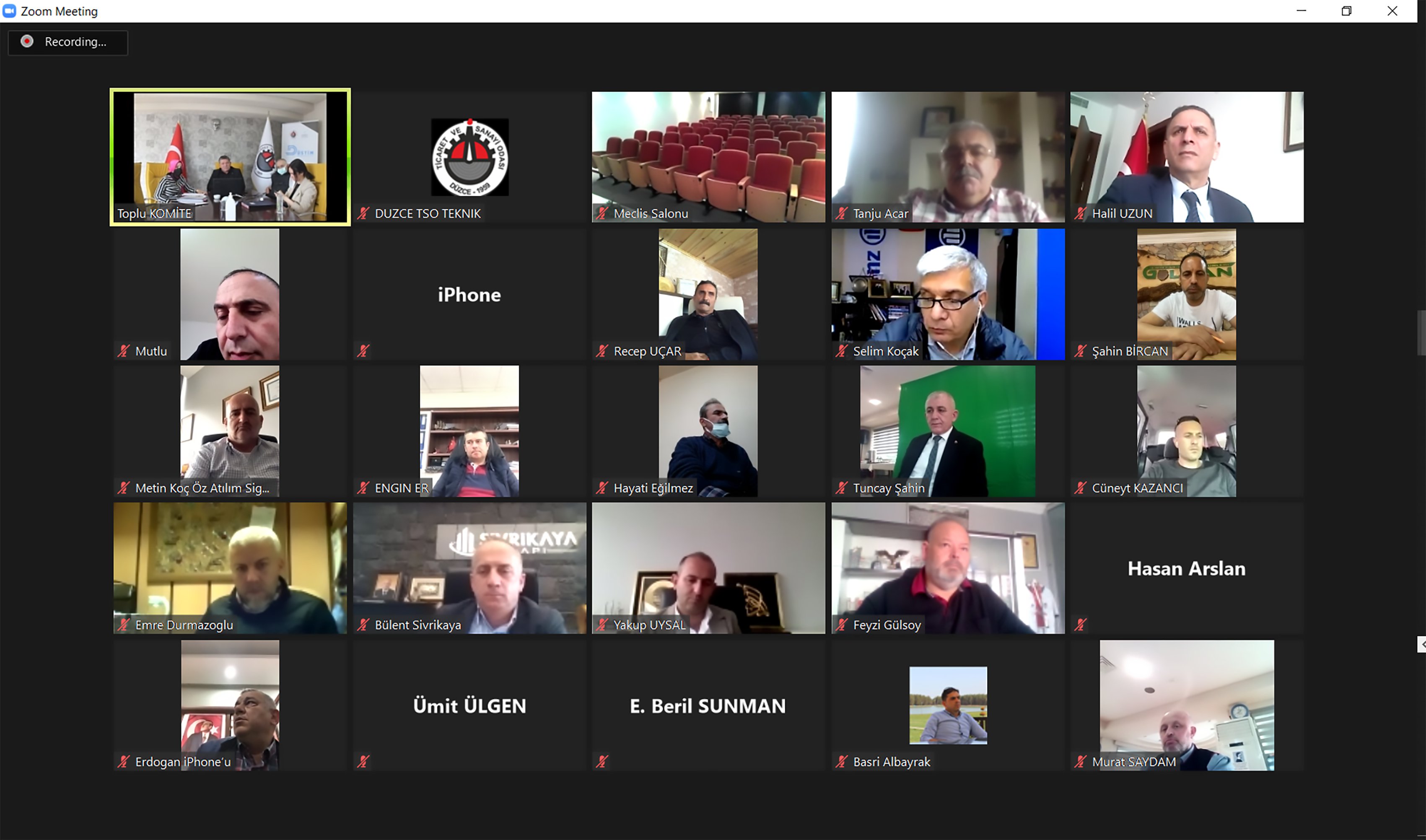 Düzce Ticaret ve Sanayi Odası'nın ilgili mevzuat gereği yılda iki kez yapılması zorunlu olan Toplu Komite Toplantılarının ilki Düzce TSO Meclis Başkanı Ahmet Dertli’nin başkanlığında video konferans yöntemi ile gerçekleştirildi.