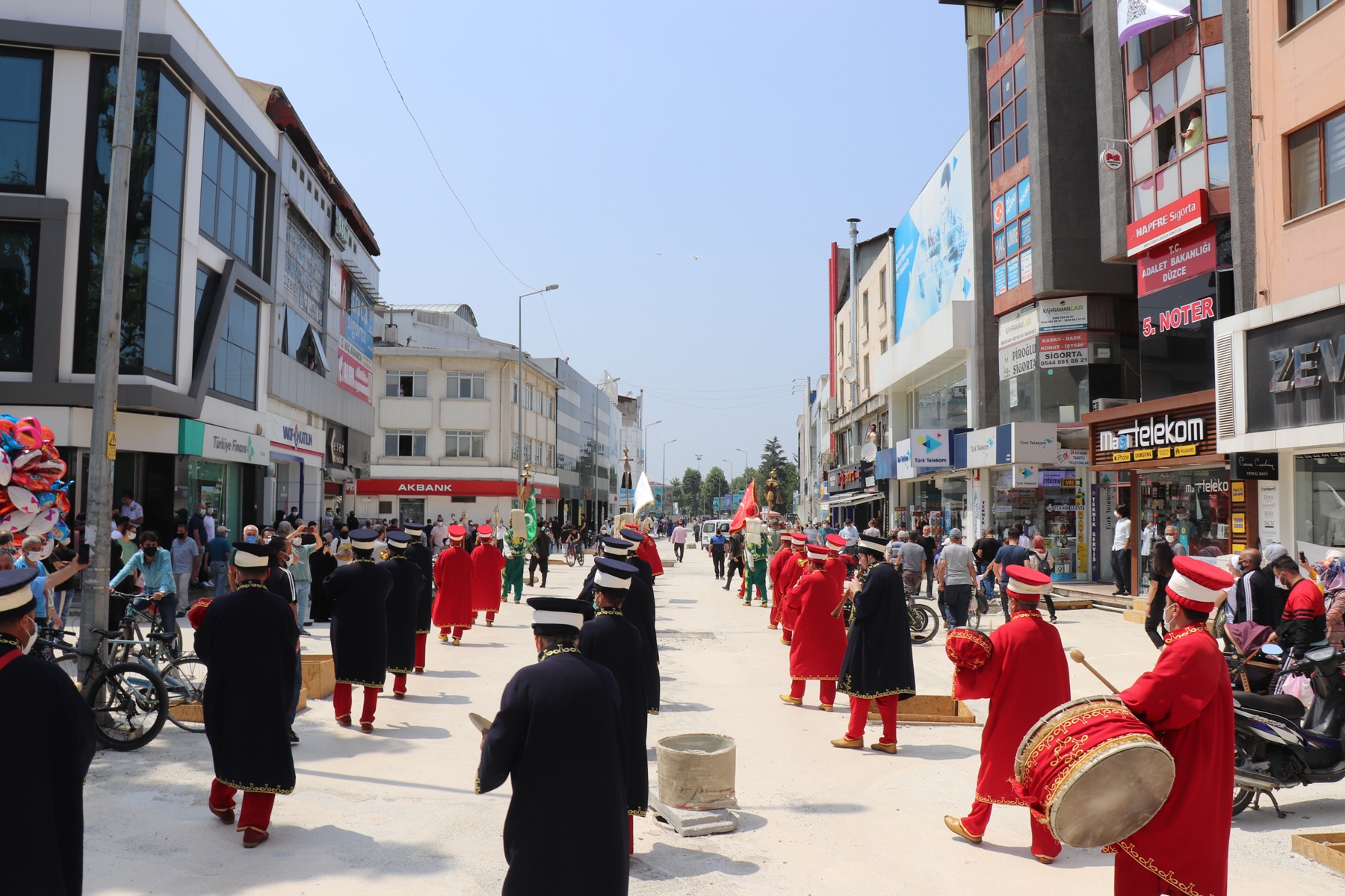 Düzce Belediyesi Mehteran Takımı, Cedidiye Meydanı’ndan çaldığı marşlar eşliğinde yürüyüşüne başladı. Çaldığı marşlar ile İstanbul Caddesi üzerinden geçen Mehter Takımı vatandaşlar tarafından alkışlar ile karşılandı. Vatandaşlar Mehter takımını heyecanlı ve meraklı gözler ile izlerken bir yandan da telefonları ile videolar çektiler.