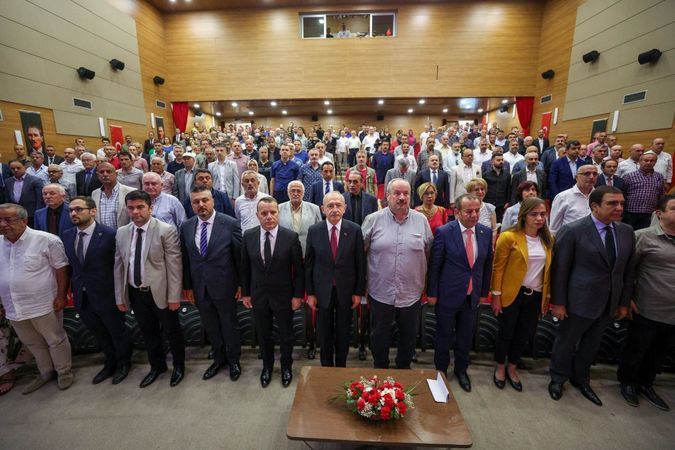 CHP Genel Başkanı Kemal Kılıçdaroğlu, kamyoncular kooperatifi ve esnaf ziyaretlerinin ardından Düzce Belediyesi Kültür Merkezinde muhtarlar, kanaat önderleri ve STK'larla bir araya geldi.