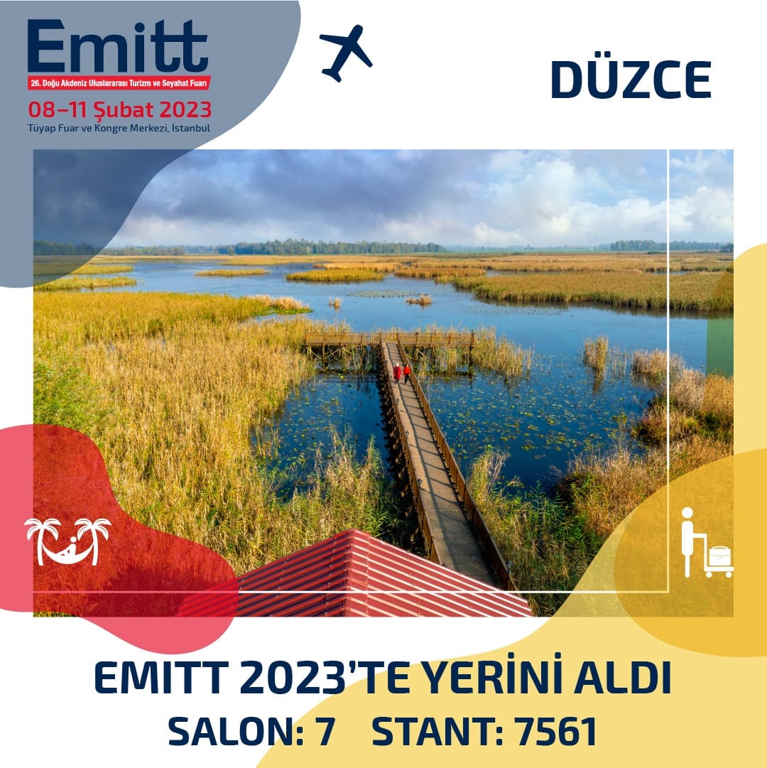Dünyanın en büyük beş turizm fuarından biri kabul edilen ve bu yıl 8-11 Şubat 2023 tarihlerinde 26.’sı düzenlenecek olan Doğu Akdeniz Uluslararası Turizm ve Seyahat Fuarı EMİTT’e, Valiliğimiz Başkanlığında, Düzce İl Kültür ve Turizm Müdürlüğü koordinasyonunda, Düzce Belediye Başkanlığı, Düzce İl Özel İdaresi, Düzce Ticaret ve Sanayi Odası ve Akçakoca Ticaret ve Sanayi Odası’nın katkılarıyla, ilgili Kurum ve Kuruluşların işbirliği ile katılım sağlanacaktır.