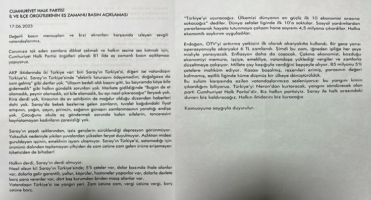 CHP İL BAŞKANI ÇEMŞİT'İN BASIN AÇIKLAMASI