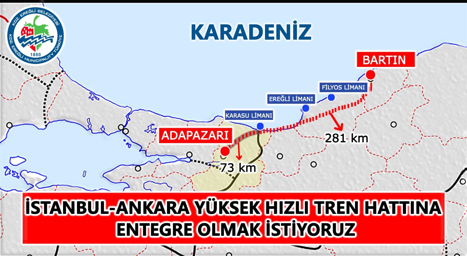 Sevgili basın mensupları, Buradan sizlerin aracılığıyla sesleniyorum. Kdz. Ereğli olarak bir an evvel İstanbul-Ankara Yüksek Hızlı Tren Hattına entegre olmak istiyoruz.