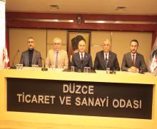 Düzce Belediye Başkanı ve Ak Parti Düzce Belediye Başkan Adayı Dr. Faruk Özlü, beraberinde Ak Parti Düzce İl Başkanı Hasan Şengüloğlu ve il yönetimiyle birlikte Düzce Ticaret ve Sanayi Odası’nı ziyaret etti.