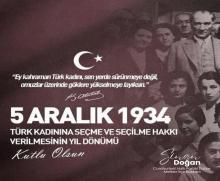 5 Aralık, kadınların eşitlik ve hak mücadelesinin simgesi olan önemli bir gündür. Kadın Hakları Günü, her kadının özgür, güçlü ve eşit bir şekilde yaşama hakkı olduğunun altını çizmektedir. Kadınların toplumsal, ekonomik ve siyasal hayattaki katkıları, toplumların gelişimine yön vermektedir. Bu özel günde, tüm kadınların haklarının savunulması ve güçlendirilmesi adına atılan adımları kutluyor, eşitlik ve adalet adına atılacak her adıma destek veriyoruz...