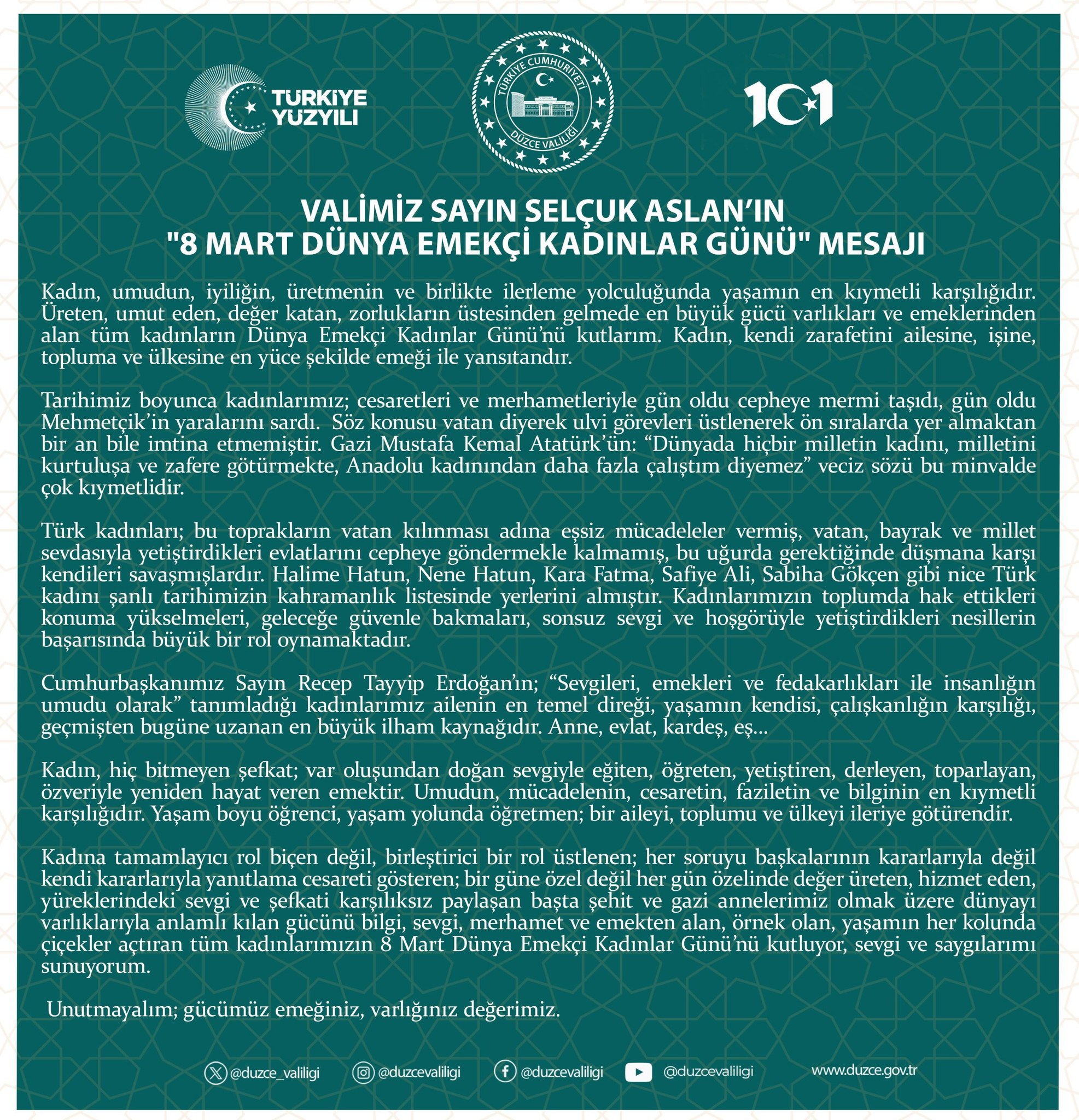 Düzce Valisi Selçuk Aslan'ın mesajı