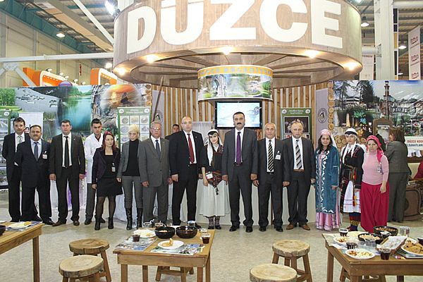 Fuarda Düzce Belediyesi'nin stantı BAKAB ( Batı Karadeniz Kalkınma Birliği) salonunda yer aldı. Dış İlişkiler Müdürlüğünün organizasyonunu yaptığı 100 metrekarelik stantta Düzce'ye özgü el sanatları, yöresel yemek ve ürünleri yer aldı. Stantta ayrıca Düzce'nin turizm değerlerine ve potansiyeline ilişkin görsel ve çeşitli materyaller de bulundu. Fuarın ilk günü davetlilere açıldı. BAKAB salonunda bulunan Düzce standını gezen konutlara Düzce'ye özgü ürünler armağan edildi. Düzce Belediye Başkanı İsmail Bayram gün boyu standa gelen konuklarla tek tek ilgilendi. Başkan Bayram'la birlikte Başkan Yardımcısı Bayram Bayraktar Belediye Meclis Üyeleri İsa Eser ile Murat Saydam da konukları karşıladı. İlk gün ziyaretçileri arasında Akçakoca Belediye Başkanı Fikret Albayrak, Beyköy Belediye Başkanı Osman Kılıç, Konuralp Belediye Başkanı Yusuf Ercan, Düzce Üniversitesi Rektörü Prof. Dr. Funda Sivrikaya Şerifoğlu, İl Kültür ve Turizm Müdürü Özcan Budak, TSO Meclis Başkanı Nusret Özsoy, İl Genel Meclis Üyeleri ile İstanbul'da bulunan Düzceliler ile davetliler yer aldı. Standı ayrıca BAKAB bağlı illerin Vali ve Belediye Başkanları da gezdi.