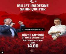 CHP Düzce Örgütü, 31 Mayıs’ta Anıtpark Meydanı’nda demokrasi ve adalet için alanlara çıkıyor! CHP Düzc