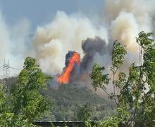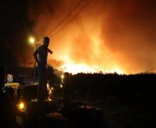 Bursa'nın Gürsu ve Kestel ilçeleri arasındaki ormanlık alanda çıkan yangın, rüzgarın etkisiyle hızla büyüyerek yerleşim alanla